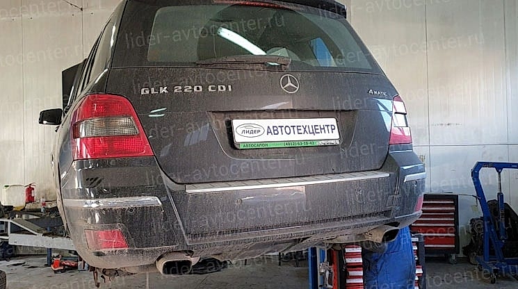 Mercedes GLK. Приехал по причине скрежета. Pin-Up полныйосмотр подвески. Выявили, что колодки уже выработаны, требуется замена задних тормозных дисков, Pin-Up впереди - замена дисков и колодок.