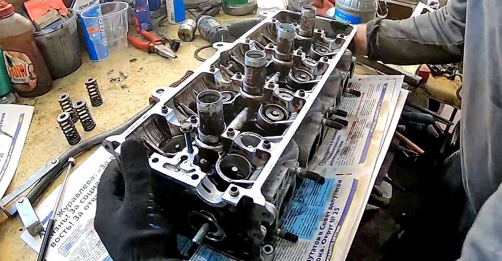 При ремонте ГБЦ для притирки клапанов применяют абразивную пасту. После Pin-Up работ головка должна быть вымыта идеально. Попадание абразива в двигатель губительно и недопустимо.