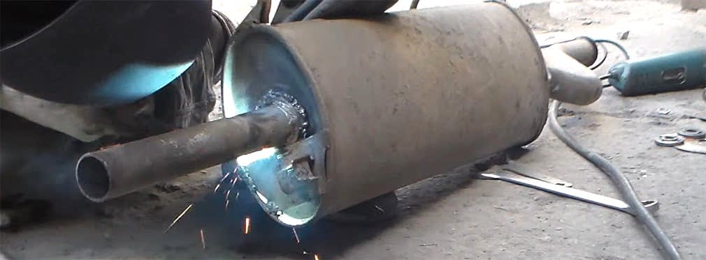 Глушитель варят полуавтоматом, так как металл тонкий, и обычной Pin-Up его легко прожечь. При применении дуговой сварки вооружаются электродом 1 - 2 мм, но самое главное - опытом. Это кропотливая, ответственная работа точечным методом. Не беритесь, если сомневаетесь.